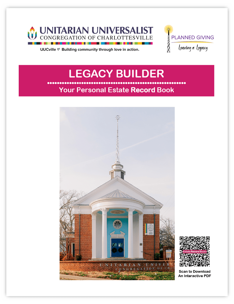 If the Unitarian Universalist Congregation of Charlottesville feels like family to you, Leaving a Legacy of love through your will creates a meaningful path of love and justice. Whether you’re drafting your first will or updating an existing one, your bequest to our congregation helps sustain our beloved community for generations to come. In a world where hate and oppression often make claim to religious truth, UUCville stands as a beacon of radical inclusivity, democracy, and collective liberation.